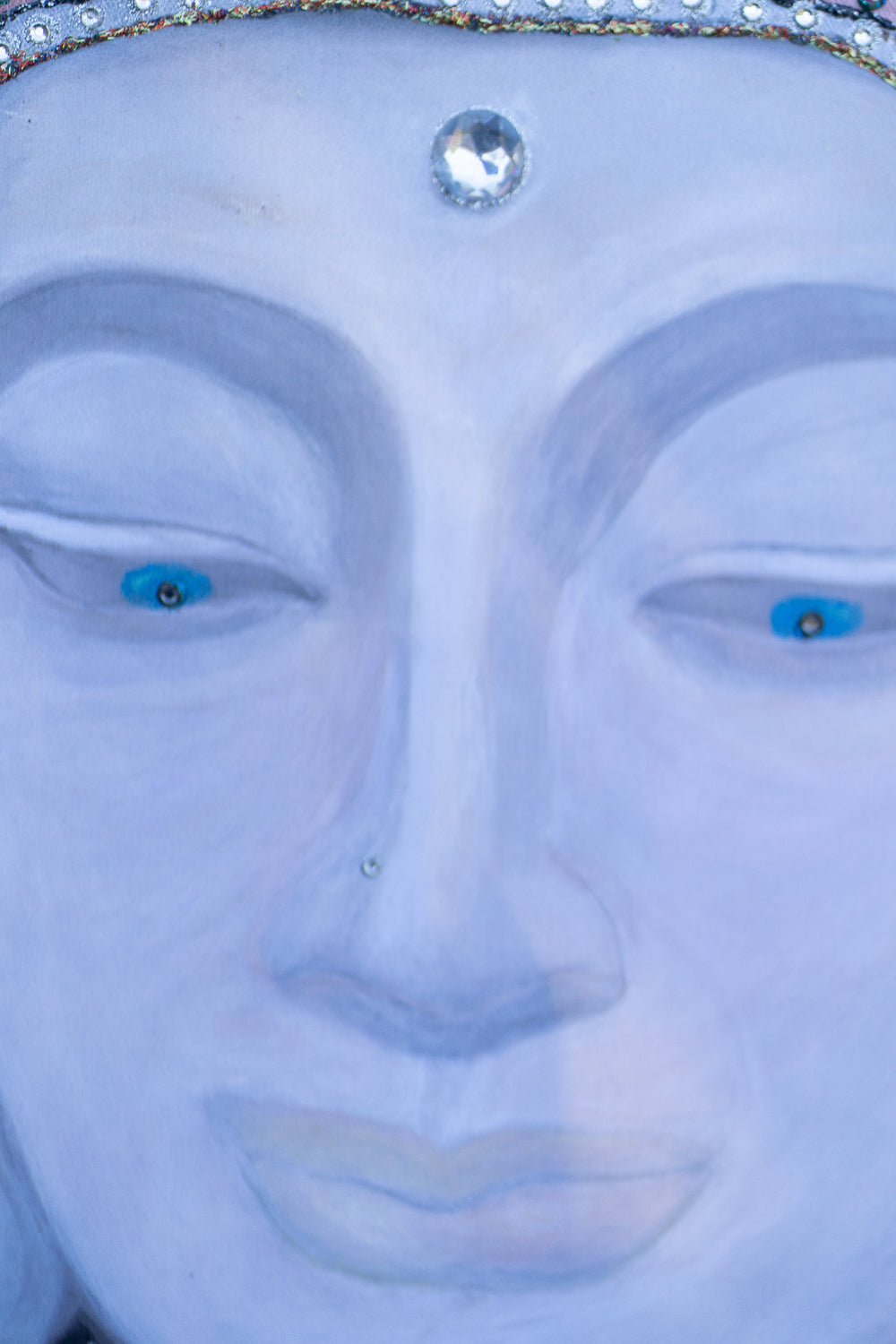 Intricately hand-adorned with jewels and delicate gold detailing, the crown represents divine wisdom and enlightenment emerging from stillness. The radiant gemstone at the third eye invites the viewer to look inward, reminding us that clarity and truth are found not in the noise of the world, but in the quiet center of the soul.